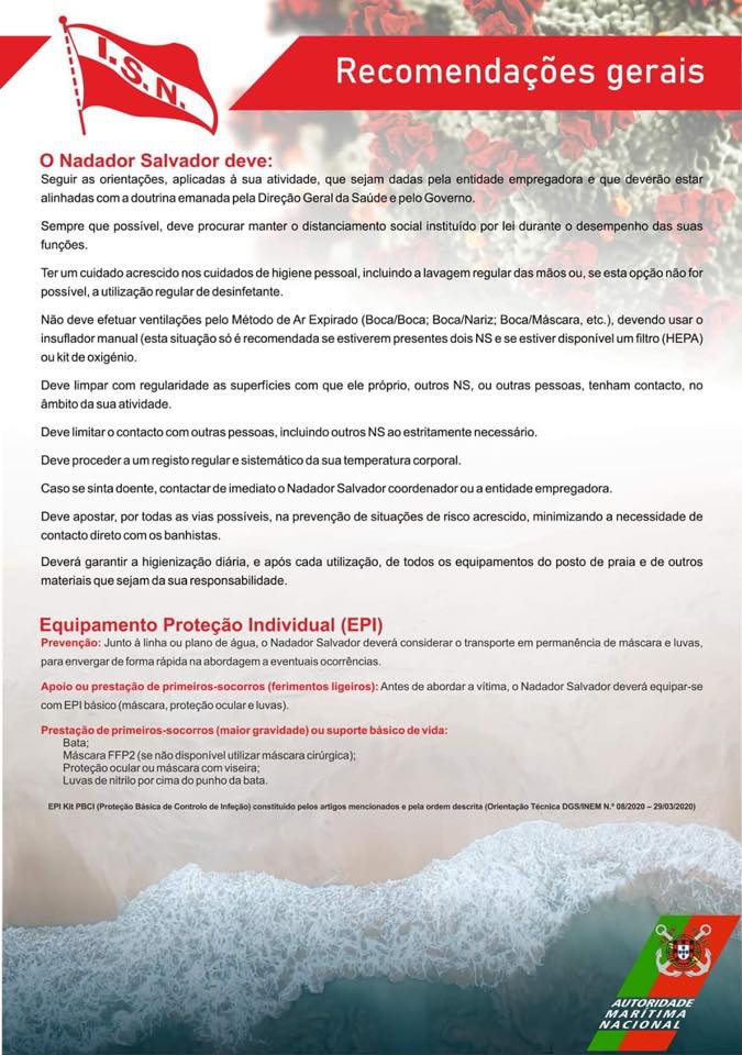 Foi hoje publicado pelo Instituto de Socorros a Náufragos as recomendações gerais para os Nadadores Salvadores.